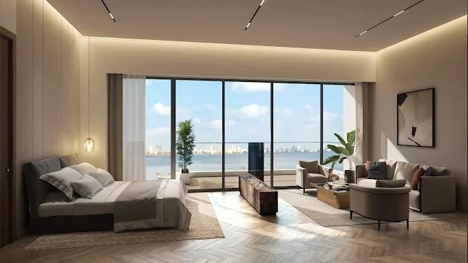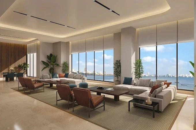 Each expansive residence offers approximately 2,300 sq. ft. of RERA carpet area and breathtaking 180° panoramic views of the Arabian Sea. A grand double-height entrance lobby sets the tone for arrival, while private elevators ensure absolute discretion and comfort. Every home is complemented with three reserved car parks and thoughtfully curated lifestyle spaces including Oasis 34—a tranquil terrace and meditation retreat—along with the Horizon Club, executive suites, and elegant celebration banquets.